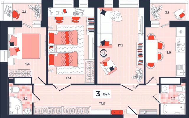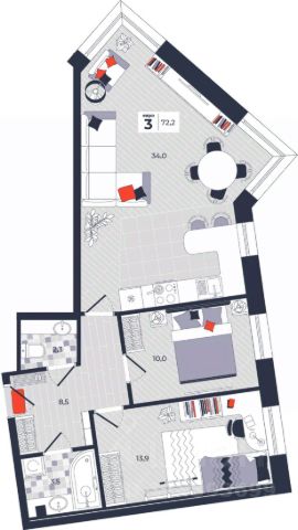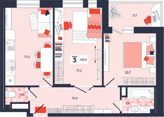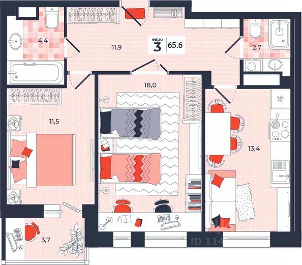 Продаётся 3-комнатная квартира в строящемся доме (Дом 20), срок сдачи: IV-кв. 2025, общей площадью 69.9 кв.м., на 11 этаже. Расположение, транспортная доступность Новый жилой комплекс "Юго-Восточный" строится в Туле, в 3,5 км от центра города. Благодаря удачным транспортным развязкам, автолюбители смогут доехать до центральных кварталов примерно за 5 10 минут, составив наиболее быстрый и удобный маршрут с учетом загруженности дорог. Проблем с мобильностью не возникнет и у пассажиров общественного транспорта. Рядом с домом расположены остановки автобусов и маршрутных такси, которые быстро довезут до любого района города. Так, чтобы добраться до центра, следует дойти пешком до остановки "Медтехника", где останавливается маршрутное такси, доезжающее до центральных кварталов всего за 7 8 минут. Инфраструктура Район, где возводится новый жилой комплекс, активно застраивается, и сеть инфраструктуры сов временем будет расширяться. Но и сейчас все, что нужно для комфортной жизни в городе, находится недалеко от жилого комплекса. В шаговой доступности расположены продуктовые магазины: "Виктория", "Овощи-фрукты", Магазин рыбы и мяса птицы, магазин мяса и колбас "У Максима", супермаркеты "Дикси", "Пятерочка", "SPAR". Неподалеку находится гипермаркет "Линия", крупный торговый центр, в котором расположены отделения банков, гипермаркет "Глобус", салон оптики, мебельный магазин "Столплит", зоомагазин "Четыре лапы" и пр. В соседнем здании находится строительный гипермаркет "Леруа Мерлен", за ним крупный магазин товаров для спорта, туризма и активного отдыха "Декатлон".Недалеко от жилого комплекса открыты кафе и рестораны: кофейня "Bonape", пиццерия "Культура", кафе "Вкуснов", кафе быстрого обслуживания "Rapido", ресторан "У фонтана" и пр.В районе есть аптеки, поликлиники, диагностические центры. В шаговой доступности от жилого комплекса расположено несколько детских садиков, в том числе, садик комбинированного вида "Алые паруса". Есть дошкольные отделения, входящие в состав образовательных центров, Центры развития ребенка. Поблизости расположены средние школы, в том числе, школа для детей с ОВЗ. Рядом с жилым комплексом находится Тульская Духовная Семинария и Суворовское училище. Надежность застройщик: достраивает объект ООО Ин-Групп.АрхитектураЖилой комплекс будет представлен 19 монолитно-кирпичными корпусами переменной этажности, выполненными в едином архитектурном стиле. При строительстве ЖК "Юго-Восточный" применяются современные материалы высокого качества, которые обеспечивают надежность домов и комфортный микроклимат в помещениях. Каждая секция оснащается современными лифтами. Помещения общего пользования отделываются экологичными материалами. Квартиры предлагаются однокомнатные (от 43,9 кв. м), двухкомнатные (от 45,8 кв. м), трехкомнатные (от 60,4 кв. м) и четырехкомнатные (от 87,2 кв. м), а также уютные студии (от 28,9 кв. м).На внутренней территории проводится комплексное благоустройство: озеленение, организация игровых площадок, мест для отдыха и за