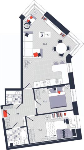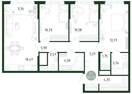 Современная квартира в новостройке комфорт-класса от застройщика. ЖК "Фамилия" В эту квартиру вы влюбитесь с первого взгляда. Она просторная, удобная и по-настоящему функциональная. Три комнаты имеют правильную геометрию. Это удобно и позволяет преобразовать жилье под свои потребности. Мастер-спальня самая большая, с собственным санузлом и выходом на лоджию. На лоджии установлены панорамные окна от пола до потолка эстетичные и безопасные. Кухня-гостиная площадью 22,6 кв. м имеет три окна. Такая планировка создает хорошую освещенность и упрощает зонирование. Прихожая изолирована от других комнат и по сути представляет собой просторный холл, благодаря чему вы получаете свободу при выборе дизайна и размещения мебели. Также в квартире предусмотрен автономный санузел и кладовая для хранения сезонных вещей. Во всех наших квартирах высокие потолки 2,74 м и увеличенные оконные проемы в вашем доме будет больше света и простора. ЭТО ОЧЕНЬ ВАЖНО! В каждой квартире выполнена предчистовая отделка, сухая стяжка пола с шумоизоляцией, разводка электрики, подведены индивидуальные счетчики отопления, слаботочные щиты для кабелей интернета и телевидения, установлен домофон, а также дизайнерская стальная дверь, которая не требует замены. Каждый дом в ЖК "Фамилия" это новый уровень качества, который вы точно оцените по достоинству. -Красивые высотки с современной планировкой соответствуют стилю жизни современного человека. Дизайнерское оформление входных групп и подъездов. Отдельные помещения для мойки лап животных и хранения колясок на первом этаже. -Закрытый двор с видеонаблюдением, свободный от машин, где можно чувствовать себя безопасно и спокойно. Несколько игровых площадок для детей разных возрастов. Зоны для спортивных тренировок, йоги, площадки для командных игр. Отдельная территория под парковку на 766 машиномест. Зеленые зоны с цветочными клумбами и декоративными растениями во дворе. Прогулочные аллеи с освещением и Wi-Fi. -Точки для зарядки электрокаров. И это далеко не все. Звоните, чтобы узнать подробности и получить индивидуальное предложение.