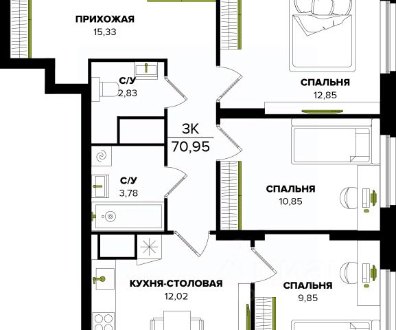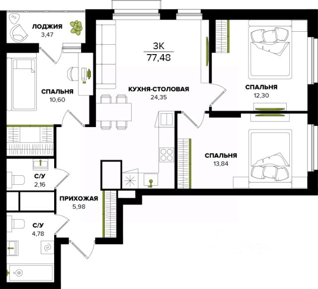 Современная квартира в новостройке комфорт-класса от застройщика. ЖК "Фамилия" В эту квартиру вы влюбитесь с первого взгляда. Она просторная, удобная и по-настоящему функциональная. Три комнаты имеют правильную геометрию. Это удобно и позволяет преобразовать жилье под свои потребности. Мастер-спальня самая большая, с собственным санузлом и выходом на лоджию. На лоджии установлены панорамные окна от пола до потолка эстетичные и безопасные. Кухня-гостиная площадью 22,6 кв. м имеет три окна. Такая планировка создает хорошую освещенность и упрощает зонирование. Прихожая изолирована от других комнат и по сути представляет собой просторный холл, благодаря чему вы получаете свободу при выборе дизайна и размещения мебели. Также в квартире предусмотрен автономный санузел и кладовая для хранения сезонных вещей. Во всех наших квартирах высокие потолки 2,74 м и увеличенные оконные проемы в вашем доме будет больше света и простора. ЭТО ОЧЕНЬ ВАЖНО! В каждой квартире выполнена предчистовая отделка, сухая стяжка пола с шумоизоляцией, разводка электрики, подведены индивидуальные счетчики отопления, слаботочные щиты для кабелей интернета и телевидения, установлен домофон, а также дизайнерская стальная дверь, которая не требует замены. Каждый дом в ЖК "Фамилия" это новый уровень качества, который вы точно оцените по достоинству. -Красивые высотки с современной планировкой соответствуют стилю жизни современного человека. Дизайнерское оформление входных групп и подъездов. Отдельные помещения для мойки лап животных и хранения колясок на первом этаже. -Закрытый двор с видеонаблюдением, свободный от машин, где можно чувствовать себя безопасно и спокойно. Несколько игровых площадок для детей разных возрастов. Зоны для спортивных тренировок, йоги, площадки для командных игр. Отдельная территория под парковку на 766 машиномест. Зеленые зоны с цветочными клумбами и декоративными растениями во дворе. Прогулочные аллеи с освещением и Wi-Fi. -Точки для зарядки электрокаров. И это далеко не все. Звоните, чтобы узнать подробности и получить индивидуальное предложение.