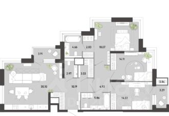 Продаётся 3-комнатная квартира в строящемся доме (Позиция 2), срок сдачи: III-кв. 2029, общей площадью 85.59 кв.м., на 6 этаже. Новый жилой комплекс в г. Тула "Платон Парк" от застройщика ООО "СЗ "МОНОЛИТ""