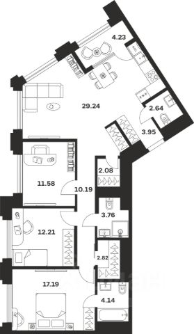 Продаётся 3-комнатная квартира в строящемся доме (Дом 30), срок сдачи: IV-кв. 2026, общей площадью 68.9 кв.м., на 7 этаже. Расположение, транспортная доступность Новый жилой комплекс "Юго-Восточный" строится в Туле, в 3,5 км от центра города. Благодаря удачным транспортным развязкам, автолюбители смогут доехать до центральных кварталов примерно за 5 10 минут, составив наиболее быстрый и удобный маршрут с учетом загруженности дорог. Проблем с мобильностью не возникнет и у пассажиров общественного транспорта. Рядом с домом расположены остановки автобусов и маршрутных такси, которые быстро довезут до любого района города. Так, чтобы добраться до центра, следует дойти пешком до остановки "Медтехника", где останавливается маршрутное такси, доезжающее до центральных кварталов всего за 7 8 минут. Инфраструктура Район, где возводится новый жилой комплекс, активно застраивается, и сеть инфраструктуры сов временем будет расширяться. Но и сейчас все, что нужно для комфортной жизни в городе, находится недалеко от жилого комплекса. В шаговой доступности расположены продуктовые магазины: "Виктория", "Овощи-фрукты", Магазин рыбы и мяса птицы, магазин мяса и колбас "У Максима", супермаркеты "Дикси", "Пятерочка", "SPAR". Неподалеку находится гипермаркет "Линия", крупный торговый центр, в котором расположены отделения банков, гипермаркет "Глобус", салон оптики, мебельный магазин "Столплит", зоомагазин "Четыре лапы" и пр. В соседнем здании находится строительный гипермаркет "Леруа Мерлен", за ним крупный магазин товаров для спорта, туризма и активного отдыха "Декатлон".Недалеко от жилого комплекса открыты кафе и рестораны: кофейня "Bonape", пиццерия "Культура", кафе "Вкуснов", кафе быстрого обслуживания "Rapido", ресторан "У фонтана" и пр.В районе есть аптеки, поликлиники, диагностические центры. В шаговой доступности от жилого комплекса расположено несколько детских садиков, в том числе, садик комбинированного вида "Алые паруса". Есть дошкольные отделения, входящие в состав образовательных центров, Центры развития ребенка. Поблизости расположены средние школы, в том числе, школа для детей с ОВЗ. Рядом с жилым комплексом находится Тульская Духовная Семинария и Суворовское училище. Надежность застройщик: достраивает объект ООО Ин-Групп.АрхитектураЖилой комплекс будет представлен 19 монолитно-кирпичными корпусами переменной этажности, выполненными в едином архитектурном стиле. При строительстве ЖК "Юго-Восточный" применяются современные материалы высокого качества, которые обеспечивают надежность домов и комфортный микроклимат в помещениях. Каждая секция оснащается современными лифтами. Помещения общего пользования отделываются экологичными материалами. Квартиры предлагаются однокомнатные (от 43,9 кв. м), двухкомнатные (от 45,8 кв. м), трехкомнатные (от 60,4 кв. м) и четырехкомнатные (от 87,2 кв. м), а также уютные студии (от 28,9 кв. м).На внутренней территории проводится комплексное благоустройство: озеленение, организация игровых площадок, мест для отдыха и зан