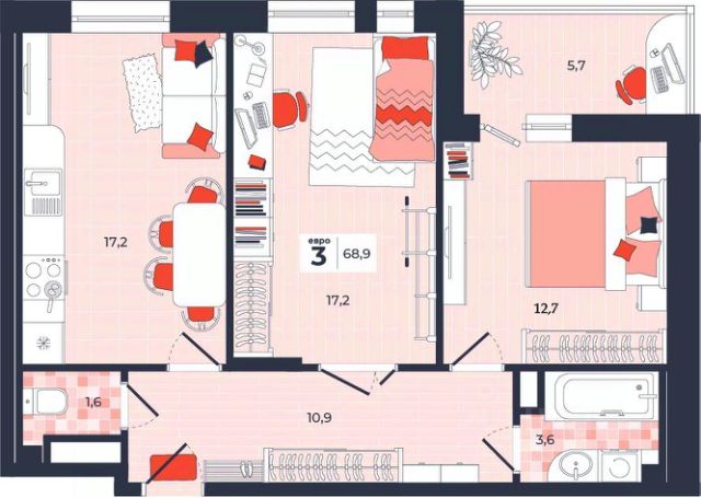 Продаётся 3-комнатная квартира в строящемся доме (Дом 28), срок сдачи: I-кв. 2027, общей площадью 55 кв.м., на 7 этаже. Расположение, транспортная доступность Новый жилой комплекс "Юго-Восточный" строится в Туле, в 3,5 км от центра города. Благодаря удачным транспортным развязкам, автолюбители смогут доехать до центральных кварталов примерно за 5 10 минут, составив наиболее быстрый и удобный маршрут с учетом загруженности дорог. Проблем с мобильностью не возникнет и у пассажиров общественного транспорта. Рядом с домом расположены остановки автобусов и маршрутных такси, которые быстро довезут до любого района города. Так, чтобы добраться до центра, следует дойти пешком до остановки "Медтехника", где останавливается маршрутное такси, доезжающее до центральных кварталов всего за 7 8 минут. Инфраструктура Район, где возводится новый жилой комплекс, активно застраивается, и сеть инфраструктуры сов временем будет расширяться. Но и сейчас все, что нужно для комфортной жизни в городе, находится недалеко от жилого комплекса. В шаговой доступности расположены продуктовые магазины: "Виктория", "Овощи-фрукты", Магазин рыбы и мяса птицы, магазин мяса и колбас "У Максима", супермаркеты "Дикси", "Пятерочка", "SPAR". Неподалеку находится гипермаркет "Линия", крупный торговый центр, в котором расположены отделения банков, гипермаркет "Глобус", салон оптики, мебельный магазин "Столплит", зоомагазин "Четыре лапы" и пр. В соседнем здании находится строительный гипермаркет "Леруа Мерлен", за ним крупный магазин товаров для спорта, туризма и активного отдыха "Декатлон".Недалеко от жилого комплекса открыты кафе и рестораны: кофейня "Bonape", пиццерия "Культура", кафе "Вкуснов", кафе быстрого обслуживания "Rapido", ресторан "У фонтана" и пр.В районе есть аптеки, поликлиники, диагностические центры. В шаговой доступности от жилого комплекса расположено несколько детских садиков, в том числе, садик комбинированного вида "Алые паруса". Есть дошкольные отделения, входящие в состав образовательных центров, Центры развития ребенка. Поблизости расположены средние школы, в том числе, школа для детей с ОВЗ. Рядом с жилым комплексом находится Тульская Духовная Семинария и Суворовское училище. Надежность застройщик: достраивает объект ООО Ин-Групп.АрхитектураЖилой комплекс будет представлен 19 монолитно-кирпичными корпусами переменной этажности, выполненными в едином архитектурном стиле. При строительстве ЖК "Юго-Восточный" применяются современные материалы высокого качества, которые обеспечивают надежность домов и комфортный микроклимат в помещениях. Каждая секция оснащается современными лифтами. Помещения общего пользования отделываются экологичными материалами. Квартиры предлагаются однокомнатные (от 43,9 кв. м), двухкомнатные (от 45,8 кв. м), трехкомнатные (от 60,4 кв. м) и четырехкомнатные (от 87,2 кв. м), а также уютные студии (от 28,9 кв. м).На внутренней территории проводится комплексное благоустройство: озеленение, организация игровых площадок, мест для отдыха и заняти