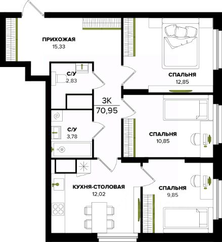 ЖК Семейный бульвар -3, ГП, 2, квартира 379