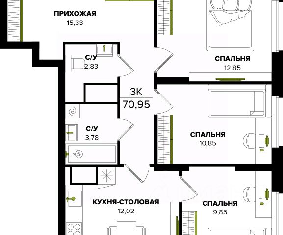 Продаётся 3-комнатная квартира в строящемся доме (Дом 28), срок сдачи: I-кв. 2027, общей площадью 55.7 кв.м., на 3 этаже. Расположение, транспортная доступность Новый жилой комплекс "Юго-Восточный" строится в Туле, в 3,5 км от центра города. Благодаря удачным транспортным развязкам, автолюбители смогут доехать до центральных кварталов примерно за 5 10 минут, составив наиболее быстрый и удобный маршрут с учетом загруженности дорог. Проблем с мобильностью не возникнет и у пассажиров общественного транспорта. Рядом с домом расположены остановки автобусов и маршрутных такси, которые быстро довезут до любого района города. Так, чтобы добраться до центра, следует дойти пешком до остановки "Медтехника", где останавливается маршрутное такси, доезжающее до центральных кварталов всего за 7 8 минут. Инфраструктура Район, где возводится новый жилой комплекс, активно застраивается, и сеть инфраструктуры сов временем будет расширяться. Но и сейчас все, что нужно для комфортной жизни в городе, находится недалеко от жилого комплекса. В шаговой доступности расположены продуктовые магазины: "Виктория", "Овощи-фрукты", Магазин рыбы и мяса птицы, магазин мяса и колбас "У Максима", супермаркеты "Дикси", "Пятерочка", "SPAR". Неподалеку находится гипермаркет "Линия", крупный торговый центр, в котором расположены отделения банков, гипермаркет "Глобус", салон оптики, мебельный магазин "Столплит", зоомагазин "Четыре лапы" и пр. В соседнем здании находится строительный гипермаркет "Леруа Мерлен", за ним крупный магазин товаров для спорта, туризма и активного отдыха "Декатлон".Недалеко от жилого комплекса открыты кафе и рестораны: кофейня "Bonape", пиццерия "Культура", кафе "Вкуснов", кафе быстрого обслуживания "Rapido", ресторан "У фонтана" и пр.В районе есть аптеки, поликлиники, диагностические центры. В шаговой доступности от жилого комплекса расположено несколько детских садиков, в том числе, садик комбинированного вида "Алые паруса". Есть дошкольные отделения, входящие в состав образовательных центров, Центры развития ребенка. Поблизости расположены средние школы, в том числе, школа для детей с ОВЗ. Рядом с жилым комплексом находится Тульская Духовная Семинария и Суворовское училище. Надежность застройщик: достраивает объект ООО Ин-Групп.АрхитектураЖилой комплекс будет представлен 19 монолитно-кирпичными корпусами переменной этажности, выполненными в едином архитектурном стиле. При строительстве ЖК "Юго-Восточный" применяются современные материалы высокого качества, которые обеспечивают надежность домов и комфортный микроклимат в помещениях. Каждая секция оснащается современными лифтами. Помещения общего пользования отделываются экологичными материалами. Квартиры предлагаются однокомнатные (от 43,9 кв. м), двухкомнатные (от 45,8 кв. м), трехкомнатные (от 60,4 кв. м) и четырехкомнатные (от 87,2 кв. м), а также уютные студии (от 28,9 кв. м).На внутренней территории проводится комплексное благоустройство: озеленение, организация игровых площадок, мест для отдыха и заня