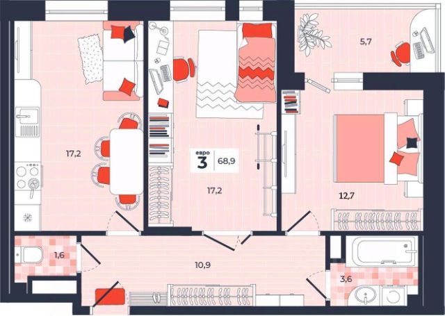 Продаётся 3-комнатная квартира в строящемся доме (Дом 30), срок сдачи: IV-кв. 2026, общей площадью 87.8 кв.м., на 6 этаже. Расположение, транспортная доступность Новый жилой комплекс "Юго-Восточный" строится в Туле, в 3,5 км от центра города. Благодаря удачным транспортным развязкам, автолюбители смогут доехать до центральных кварталов примерно за 5 10 минут, составив наиболее быстрый и удобный маршрут с учетом загруженности дорог. Проблем с мобильностью не возникнет и у пассажиров общественного транспорта. Рядом с домом расположены остановки автобусов и маршрутных такси, которые быстро довезут до любого района города. Так, чтобы добраться до центра, следует дойти пешком до остановки "Медтехника", где останавливается маршрутное такси, доезжающее до центральных кварталов всего за 7 8 минут. Инфраструктура Район, где возводится новый жилой комплекс, активно застраивается, и сеть инфраструктуры сов временем будет расширяться. Но и сейчас все, что нужно для комфортной жизни в городе, находится недалеко от жилого комплекса. В шаговой доступности расположены продуктовые магазины: "Виктория", "Овощи-фрукты", Магазин рыбы и мяса птицы, магазин мяса и колбас "У Максима", супермаркеты "Дикси", "Пятерочка", "SPAR". Неподалеку находится гипермаркет "Линия", крупный торговый центр, в котором расположены отделения банков, гипермаркет "Глобус", салон оптики, мебельный магазин "Столплит", зоомагазин "Четыре лапы" и пр. В соседнем здании находится строительный гипермаркет "Леруа Мерлен", за ним крупный магазин товаров для спорта, туризма и активного отдыха "Декатлон".Недалеко от жилого комплекса открыты кафе и рестораны: кофейня "Bonape", пиццерия "Культура", кафе "Вкуснов", кафе быстрого обслуживания "Rapido", ресторан "У фонтана" и пр.В районе есть аптеки, поликлиники, диагностические центры. В шаговой доступности от жилого комплекса расположено несколько детских садиков, в том числе, садик комбинированного вида "Алые паруса". Есть дошкольные отделения, входящие в состав образовательных центров, Центры развития ребенка. Поблизости расположены средние школы, в том числе, школа для детей с ОВЗ. Рядом с жилым комплексом находится Тульская Духовная Семинария и Суворовское училище. Надежность застройщик: достраивает объект ООО Ин-Групп.АрхитектураЖилой комплекс будет представлен 19 монолитно-кирпичными корпусами переменной этажности, выполненными в едином архитектурном стиле. При строительстве ЖК "Юго-Восточный" применяются современные материалы высокого качества, которые обеспечивают надежность домов и комфортный микроклимат в помещениях. Каждая секция оснащается современными лифтами. Помещения общего пользования отделываются экологичными материалами. Квартиры предлагаются однокомнатные (от 43,9 кв. м), двухкомнатные (от 45,8 кв. м), трехкомнатные (от 60,4 кв. м) и четырехкомнатные (от 87,2 кв. м), а также уютные студии (от 28,9 кв. м).На внутренней территории проводится комплексное благоустройство: озеленение, организация игровых площадок, мест для отдыха и зан