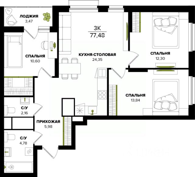 Продаётся 3-комнатная квартира в строящемся доме (Дом 30), срок сдачи: IV-кв. 2026, общей площадью 72.2 кв.м., на 14 этаже. Расположение, транспортная доступность Новый жилой комплекс "Юго-Восточный" строится в Туле, в 3,5 км от центра города. Благодаря удачным транспортным развязкам, автолюбители смогут доехать до центральных кварталов примерно за 5 10 минут, составив наиболее быстрый и удобный маршрут с учетом загруженности дорог. Проблем с мобильностью не возникнет и у пассажиров общественного транспорта. Рядом с домом расположены остановки автобусов и маршрутных такси, которые быстро довезут до любого района города. Так, чтобы добраться до центра, следует дойти пешком до остановки "Медтехника", где останавливается маршрутное такси, доезжающее до центральных кварталов всего за 7 8 минут. Инфраструктура Район, где возводится новый жилой комплекс, активно застраивается, и сеть инфраструктуры сов временем будет расширяться. Но и сейчас все, что нужно для комфортной жизни в городе, находится недалеко от жилого комплекса. В шаговой доступности расположены продуктовые магазины: "Виктория", "Овощи-фрукты", Магазин рыбы и мяса птицы, магазин мяса и колбас "У Максима", супермаркеты "Дикси", "Пятерочка", "SPAR". Неподалеку находится гипермаркет "Линия", крупный торговый центр, в котором расположены отделения банков, гипермаркет "Глобус", салон оптики, мебельный магазин "Столплит", зоомагазин "Четыре лапы" и пр. В соседнем здании находится строительный гипермаркет "Леруа Мерлен", за ним крупный магазин товаров для спорта, туризма и активного отдыха "Декатлон".Недалеко от жилого комплекса открыты кафе и рестораны: кофейня "Bonape", пиццерия "Культура", кафе "Вкуснов", кафе быстрого обслуживания "Rapido", ресторан "У фонтана" и пр.В районе есть аптеки, поликлиники, диагностические центры. В шаговой доступности от жилого комплекса расположено несколько детских садиков, в том числе, садик комбинированного вида "Алые паруса". Есть дошкольные отделения, входящие в состав образовательных центров, Центры развития ребенка. Поблизости расположены средние школы, в том числе, школа для детей с ОВЗ. Рядом с жилым комплексом находится Тульская Духовная Семинария и Суворовское училище. Надежность застройщик: достраивает объект ООО Ин-Групп.АрхитектураЖилой комплекс будет представлен 19 монолитно-кирпичными корпусами переменной этажности, выполненными в едином архитектурном стиле. При строительстве ЖК "Юго-Восточный" применяются современные материалы высокого качества, которые обеспечивают надежность домов и комфортный микроклимат в помещениях. Каждая секция оснащается современными лифтами. Помещения общего пользования отделываются экологичными материалами. Квартиры предлагаются однокомнатные (от 43,9 кв. м), двухкомнатные (от 45,8 кв. м), трехкомнатные (от 60,4 кв. м) и четырехкомнатные (от 87,2 кв. м), а также уютные студии (от 28,9 кв. м).На внутренней территории проводится комплексное благоустройство: озеленение, организация игровых площадок, мест для отдыха и за