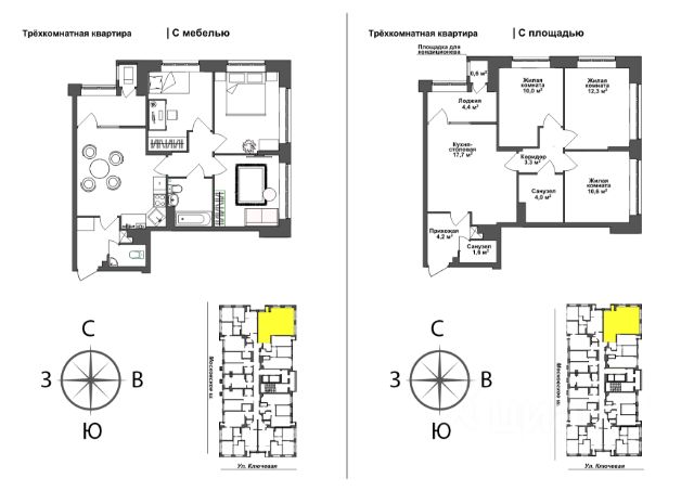 Квартира с огромными панорамными окнами, с самым лучшим видом в данном ЖК (с другой стороны ЖК уже нет вида на центр города, а только на промышленную часть) и с уникальной планировкой (в кухне-гостинной), где находится 3 окна с 2 сторон (что можно увидеть на фото). У огромной кухни-гостинной площадь 20 м2 и у лоджии примерно еще 4 м2 площадь, причем лоджия это по сути продолжение помещения, просто их технически разделили, т.к. на самой лоджии уже установлен радиатор, что позволит с легкостью убрать перегородку и превратить кухню-гостинную в уже 24 м2, и за счет того, что там уникальное остекленение от пола до потолка, превратить данную комнату, как буд-то вы находитесь в небоскребе, как к примеру показано на первом и третьем приложенном фото. Во всех остальных планировках, уже такого вида сделать будет нельзя, поэтому этот вариант квартиры и уникален.