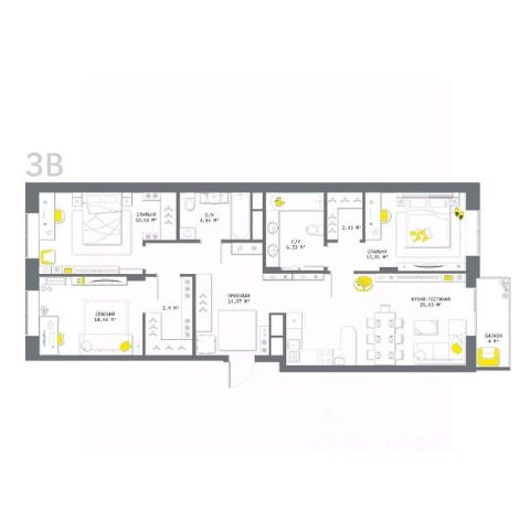 Просторная 4-комнатная квартира в жилом комплексе комфорт класса ЖК Современник