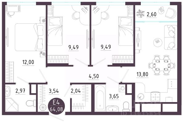 Планировка евротрешки. Кухня обьединена с