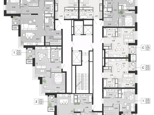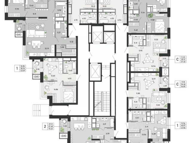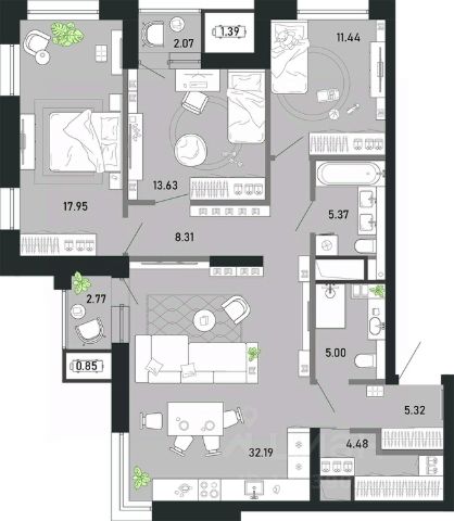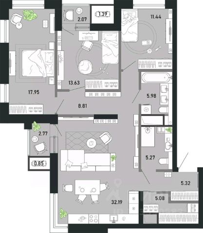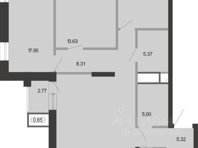Общая площадь квартиры составляет 92,5 кв.м., что обеспечивает простор и свободу для каждого члена семьи. Все комнаты изолированы, что создает дополнительный комфорт и приватность. Площадь комнат: 23,8 кв.м., 17,9 кв.м. и 13,5 кв.м. Кухня площадью 11,9 кв.м. позволит с комфортом готовить и собираться всей семьей за обедом. Раздельный санузел — еще одно преимущество для семейного проживания. В квартире есть небольшая кладовая комната для хранения вещей, а также лоджия, где можно организовать зону отдыха или мини-оранжерею. В прихожей установлены два вместительных встроенных шкафа.
