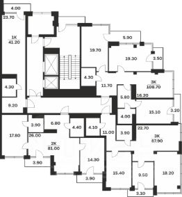 Квартира занимает два последних этажа в доме, благодаря чему вы можете наслаждаться тишиной и спокойствием, не беспокоясь о шуме соседей сверху.