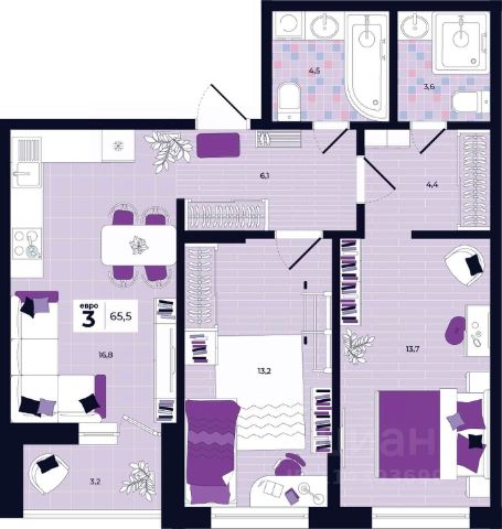 Продаётся 3-комнатная квартира в строящемся доме (Дом 26), срок сдачи: II-кв. 2027, общей площадью 49.5 кв.м., на 13 этаже. Расположение, транспортная доступность Новый жилой комплекс "Юго-Восточный" строится в Туле, в 3,5 км от центра города. Благодаря удачным транспортным развязкам, автолюбители смогут доехать до центральных кварталов примерно за 5 10 минут, составив наиболее быстрый и удобный маршрут с учетом загруженности дорог. Проблем с мобильностью не возникнет и у пассажиров общественного транспорта. Рядом с домом расположены остановки автобусов и маршрутных такси, которые быстро довезут до любого района города. Так, чтобы добраться до центра, следует дойти пешком до остановки "Медтехника", где останавливается маршрутное такси, доезжающее до центральных кварталов всего за 7 8 минут. Инфраструктура Район, где возводится новый жилой комплекс, активно застраивается, и сеть инфраструктуры сов временем будет расширяться. Но и сейчас все, что нужно для комфортной жизни в городе, находится недалеко от жилого комплекса. В шаговой доступности расположены продуктовые магазины: "Виктория", "Овощи-фрукты", Магазин рыбы и мяса птицы, магазин мяса и колбас "У Максима", супермаркеты "Дикси", "Пятерочка", "SPAR". Неподалеку находится гипермаркет "Линия", крупный торговый центр, в котором расположены отделения банков, гипермаркет "Глобус", салон оптики, мебельный магазин "Столплит", зоомагазин "Четыре лапы" и пр. В соседнем здании находится строительный гипермаркет "Леруа Мерлен", за ним крупный магазин товаров для спорта, туризма и активного отдыха "Декатлон".Недалеко от жилого комплекса открыты кафе и рестораны: кофейня "Bonape", пиццерия "Культура", кафе "Вкуснов", кафе быстрого обслуживания "Rapido", ресторан "У фонтана" и пр.В районе есть аптеки, поликлиники, диагностические центры. В шаговой доступности от жилого комплекса расположено несколько детских садиков, в том числе, садик комбинированного вида "Алые паруса". Есть дошкольные отделения, входящие в состав образовательных центров, Центры развития ребенка. Поблизости расположены средние школы, в том числе, школа для детей с ОВЗ. Рядом с жилым комплексом находится Тульская Духовная Семинария и Суворовское училище. Надежность застройщик: достраивает объект ООО Ин-Групп.АрхитектураЖилой комплекс будет представлен 19 монолитно-кирпичными корпусами переменной этажности, выполненными в едином архитектурном стиле. При строительстве ЖК "Юго-Восточный" применяются современные материалы высокого качества, которые обеспечивают надежность домов и комфортный микроклимат в помещениях. Каждая секция оснащается современными лифтами. Помещения общего пользования отделываются экологичными материалами. Квартиры предлагаются однокомнатные (от 43,9 кв. м), двухкомнатные (от 45,8 кв. м), трехкомнатные (от 60,4 кв. м) и четырехкомнатные (от 87,2 кв. м), а также уютные студии (от 28,9 кв. м).На внутренней территории проводится комплексное благоустройство: озеленение, организация игровых площадок, мест для отдыха и за Купить 3-комнатную квартиру в микрорайоне Юго-Восточный в городе Тула.