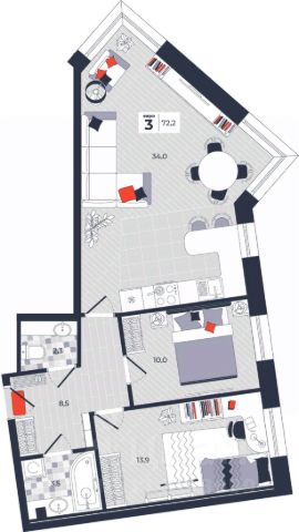 Продаётся 3-комнатная квартира в строящемся доме (Дом 28), срок сдачи: I-кв. 2027, общей площадью 65.1 кв.м., на 10 этаже. Расположение, транспортная доступность Новый жилой комплекс "Юго-Восточный" строится в Туле, в 3,5 км от центра города. Благодаря удачным транспортным развязкам, автолюбители смогут доехать до центральных кварталов примерно за 5 10 минут, составив наиболее быстрый и удобный маршрут с учетом загруженности дорог. Проблем с мобильностью не возникнет и у пассажиров общественного транспорта. Рядом с домом расположены остановки автобусов и маршрутных такси, которые быстро довезут до любого района города. Так, чтобы добраться до центра, следует дойти пешком до остановки "Медтехника", где останавливается маршрутное такси, доезжающее до центральных кварталов всего за 7 8 минут. Инфраструктура Район, где возводится новый жилой комплекс, активно застраивается, и сеть инфраструктуры сов временем будет расширяться. Но и сейчас все, что нужно для комфортной жизни в городе, находится недалеко от жилого комплекса. В шаговой доступности расположены продуктовые магазины: "Виктория", "Овощи-фрукты", Магазин рыбы и мяса птицы, магазин мяса и колбас "У Максима", супермаркеты "Дикси", "Пятерочка", "SPAR". Неподалеку находится гипермаркет "Линия", крупный торговый центр, в котором расположены отделения банков, гипермаркет "Глобус", салон оптики, мебельный магазин "Столплит", зоомагазин "Четыре лапы" и пр. В соседнем здании находится строительный гипермаркет "Леруа Мерлен", за ним крупный магазин товаров для спорта, туризма и активного отдыха "Декатлон".Недалеко от жилого комплекса открыты кафе и рестораны: кофейня "Bonape", пиццерия "Культура", кафе "Вкуснов", кафе быстрого обслуживания "Rapido", ресторан "У фонтана" и пр.В районе есть аптеки, поликлиники, диагностические центры. В шаговой доступности от жилого комплекса расположено несколько детских садиков, в том числе, садик комбинированного вида "Алые паруса". Есть дошкольные отделения, входящие в состав образовательных центров, Центры развития ребенка. Поблизости расположены средние школы, в том числе, школа для детей с ОВЗ. Рядом с жилым комплексом находится Тульская Духовная Семинария и Суворовское училище. Надежность застройщик: достраивает объект ООО Ин-Групп.АрхитектураЖилой комплекс будет представлен 19 монолитно-кирпичными корпусами переменной этажности, выполненными в едином архитектурном стиле. При строительстве ЖК "Юго-Восточный" применяются современные материалы высокого качества, которые обеспечивают надежность домов и комфортный микроклимат в помещениях. Каждая секция оснащается современными лифтами. Помещения общего пользования отделываются экологичными материалами. Квартиры предлагаются однокомнатные (от 43,9 кв. м), двухкомнатные (от 45,8 кв. м), трехкомнатные (от 60,4 кв. м) и четырехкомнатные (от 87,2 кв. м), а также уютные студии (от 28,9 кв. м).На внутренней территории проводится комплексное благоустройство: озеленение, организация игровых площадок, мест для отдыха и зан Купить 3-комнатную квартиру в микрорайоне Юго-Восточный в городе Тула.