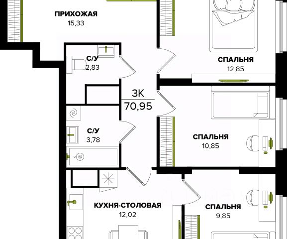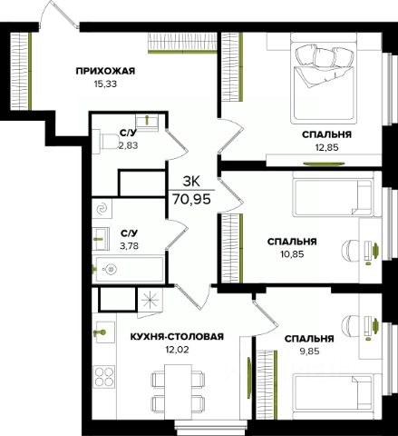 • ✅ Минимальная площадь: 43 м²