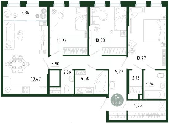 Продаётся 3-комнатная квартира в строящемся доме (Позиция 1), срок сдачи: III-кв. 2029, общей площадью 85.59 кв.м., на 12 этаже. Новый жилой комплекс в г. Тула "Платон Парк" от застройщика ООО "СЗ "МОНОЛИТ""