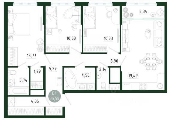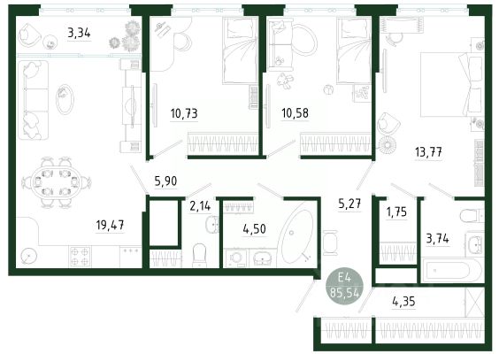 Продаётся 3-комнатная квартира в строящемся доме (Позиция 1), срок сдачи: III-кв. 2029, общей площадью 85.59 кв.м., на 4 этаже. Новый жилой комплекс в г. Тула "Платон Парк" от застройщика ООО "СЗ "МОНОЛИТ""
