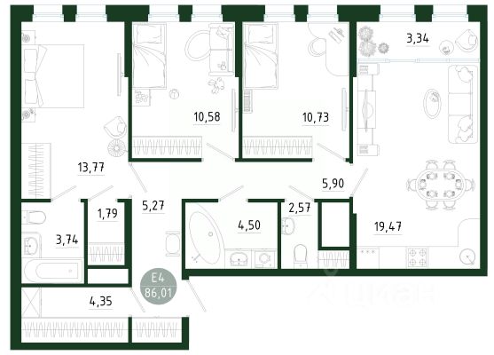 Продаётся 3-комнатная квартира в строящемся доме (Позиция 1), срок сдачи: III-кв. 2029, общей площадью 86.01 кв.м., на 7 этаже. Новый жилой комплекс в г. Тула "Платон Парк" от застройщика ООО "СЗ "МОНОЛИТ""
