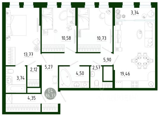Продаётся 3-комнатная квартира в строящемся доме (Позиция 2), срок сдачи: III-кв. 2029, общей площадью 86.33 кв.м., на 1 этаже. Новый жилой комплекс в г. Тула "Платон Парк" от застройщика ООО "СЗ "МОНОЛИТ""