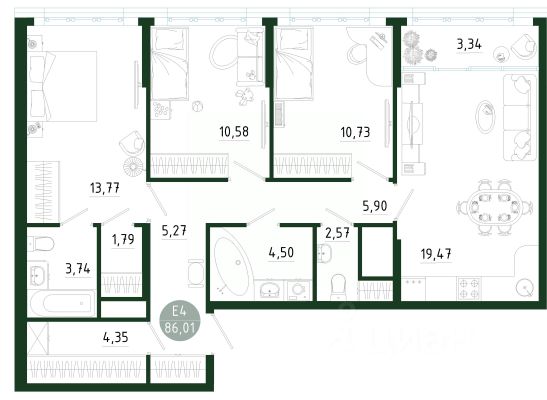 Продаётся 3-комнатная квартира в строящемся доме (Позиция 1), срок сдачи: III-кв. 2029, общей площадью 86.01 кв.м., на 5 этаже. Новый жилой комплекс в г. Тула "Платон Парк" от застройщика ООО "СЗ "МОНОЛИТ""