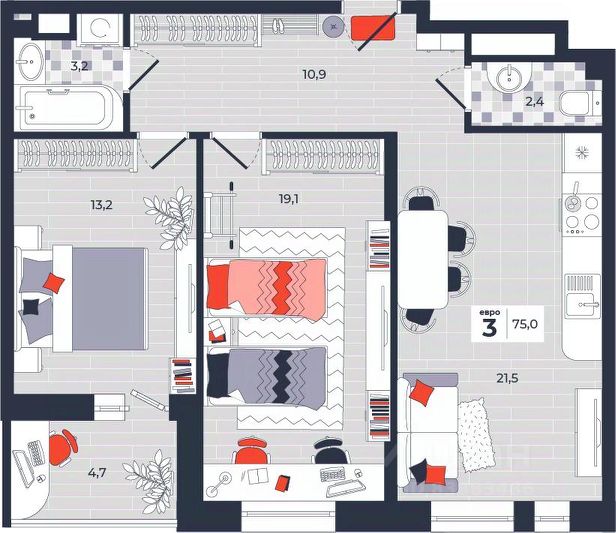 Продаётся 3-комнатная квартира в строящемся доме (Дом 26), срок сдачи: II-кв. 2027, общей площадью 49.5 кв.м., на 3 этаже. Расположение, транспортная доступность Новый жилой комплекс "Юго-Восточный" строится в Туле, в 3,5 км от центра города. Благодаря удачным транспортным развязкам, автолюбители смогут доехать до центральных кварталов примерно за 5 10 минут, составив наиболее быстрый и удобный маршрут с учетом загруженности дорог. Проблем с мобильностью не возникнет и у пассажиров общественного транспорта. Рядом с домом расположены остановки автобусов и маршрутных такси, которые быстро довезут до любого района города. Так, чтобы добраться до центра, следует дойти пешком до остановки "Медтехника", где останавливается маршрутное такси, доезжающее до центральных кварталов всего за 7 8 минут. Инфраструктура Район, где возводится новый жилой комплекс, активно застраивается, и сеть инфраструктуры сов временем будет расширяться. Но и сейчас все, что нужно для комфортной жизни в городе, находится недалеко от жилого комплекса. В шаговой доступности расположены продуктовые магазины: "Виктория", "Овощи-фрукты", Магазин рыбы и мяса птицы, магазин мяса и колбас "У Максима", супермаркеты "Дикси", "Пятерочка", "SPAR". Неподалеку находится гипермаркет "Линия", крупный торговый центр, в котором расположены отделения банков, гипермаркет "Глобус", салон оптики, мебельный магазин "Столплит", зоомагазин "Четыре лапы" и пр. В соседнем здании находится строительный гипермаркет "Леруа Мерлен", за ним крупный магазин товаров для спорта, туризма и активного отдыха "Декатлон".Недалеко от жилого комплекса открыты кафе и рестораны: кофейня "Bonape", пиццерия "Культура", кафе "Вкуснов", кафе быстрого обслуживания "Rapido", ресторан "У фонтана" и пр.В районе есть аптеки, поликлиники, диагностические центры. В шаговой доступности от жилого комплекса расположено несколько детских садиков, в том числе, садик комбинированного вида "Алые паруса". Есть дошкольные отделения, входящие в состав образовательных центров, Центры развития ребенка. Поблизости расположены средние школы, в том числе, школа для детей с ОВЗ. Рядом с жилым комплексом находится Тульская Духовная Семинария и Суворовское училище. Надежность застройщик: достраивает объект ООО Ин-Групп.АрхитектураЖилой комплекс будет представлен 19 монолитно-кирпичными корпусами переменной этажности, выполненными в едином архитектурном стиле. При строительстве ЖК "Юго-Восточный" применяются современные материалы высокого качества, которые обеспечивают надежность домов и комфортный микроклимат в помещениях. Каждая секция оснащается современными лифтами. Помещения общего пользования отделываются экологичными материалами. Квартиры предлагаются однокомнатные (от 43,9 кв. м), двухкомнатные (от 45,8 кв. м), трехкомнатные (от 60,4 кв. м) и четырехкомнатные (от 87,2 кв. м), а также уютные студии (от 28,9 кв. м).На внутренней территории проводится комплексное благоустройство: озеленение, организация игровых площадок, мест для отдыха и зан Купить 3-комнатную квартиру 3-комнатных квартир в Юго-Восточный в Туле.