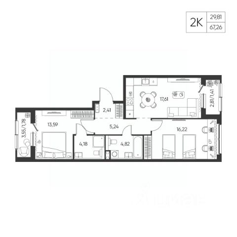 • ✓ В базе Циан 3 4-комнатных квартир на 2 этаже в Узловой