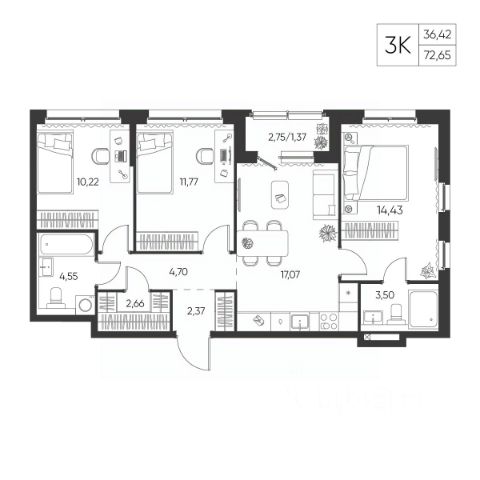 🔷 Средняя цена за м2:105,6 тыс. руб./м²