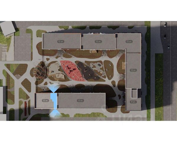 Закрытая территория: Без машин, с видеонаблюдением и продуманным ландшафтным дизайном и разносезонным озеленением.