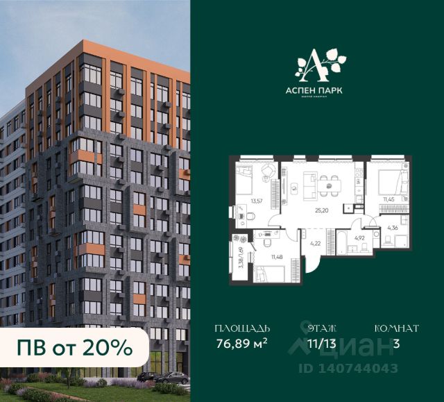 Продаётся 3-комнатная квартира в сданном доме (Аркадия Шипунова, 1 (85-86)), срок сдачи: IV-кв. 2025, общей площадью 80.8 кв.м., на 11 этаже. Расположение, транспортная доступность
