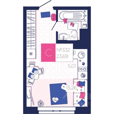 Продаётся 1-комнатная квартира в строящемся доме (85-86), срок сдачи: I-кв. 2026, общей площадью 41.5 кв.м., на 13 этаже. Расположение, транспортная доступность