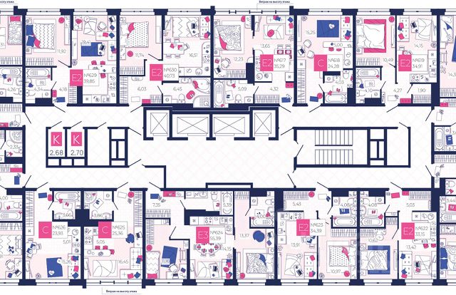 В проекте представлены разные дома: уютные трех- и пятиэтажные монолитно-кирпичные корпуса, облицованные керамогранитом, а также 14-этажные и 25-этажные монолитно-кирпичные высотки, отделанные клинкерным кирпичом. Микрорайон продуман до мелочей,