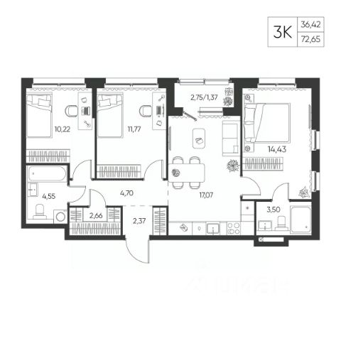 • ✓ В базе Циан 3 4-комнатных квартир на 7 этаже в Узловском районе Тульской области
