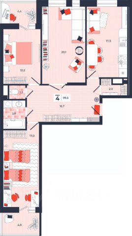 Продаётся 4-комнатная квартира в строящемся доме (Дом 30), срок сдачи: IV-кв. 2026, общей площадью 99.6 кв.м., на 8 этаже. Расположение, транспортная доступность Новый жилой комплекс "Юго-Восточный" строится в Туле, в 3,5 км от центра города. Благодаря удачным транспортным развязкам, автолюбители смогут доехать до центральных кварталов примерно за 5 10 минут, составив наиболее быстрый и удобный маршрут с учетом загруженности дорог. Проблем с мобильностью не возникнет и у пассажиров общественного транспорта. Рядом с домом расположены остановки автобусов и маршрутных такси, которые быстро довезут до любого района города. Так, чтобы добраться до центра, следует дойти пешком до остановки "Медтехника", где останавливается маршрутное такси, доезжающее до центральных кварталов всего за 7 8 минут. Инфраструктура Район, где возводится новый жилой комплекс, активно застраивается, и сеть инфраструктуры сов временем будет расширяться. Но и сейчас все, что нужно для комфортной жизни в городе, находится недалеко от жилого комплекса. В шаговой доступности расположены продуктовые магазины: "Виктория", "Овощи-фрукты", Магазин рыбы и мяса птицы, магазин мяса и колбас "У Максима", супермаркеты "Дикси", "Пятерочка", "SPAR". Неподалеку находится гипермаркет "Линия", крупный торговый центр, в котором расположены отделения банков, гипермаркет "Глобус", салон оптики, мебельный магазин "Столплит", зоомагазин "Четыре лапы" и пр. В соседнем здании находится строительный гипермаркет "Леруа Мерлен", за ним крупный магазин товаров для спорта, туризма и активного отдыха "Декатлон".Недалеко от жилого комплекса открыты кафе и рестораны: кофейня "Bonape", пиццерия "Культура", кафе "Вкуснов", кафе быстрого обслуживания "Rapido", ресторан "У фонтана" и пр.В районе есть аптеки, поликлиники, диагностические центры. В шаговой доступности от жилого комплекса расположено несколько детских садиков, в том числе, садик комбинированного вида "Алые паруса". Есть дошкольные отделения, входящие в состав образовательных центров, Центры развития ребенка. Поблизости расположены средние школы, в том числе, школа для детей с ОВЗ. Рядом с жилым комплексом находится Тульская Духовная Семинария и Суворовское училище. Надежность застройщик: достраивает объект ООО Ин-Групп.АрхитектураЖилой комплекс будет представлен 19 монолитно-кирпичными корпусами переменной этажности, выполненными в едином архитектурном стиле. При строительстве ЖК "Юго-Восточный" применяются современные материалы высокого качества, которые обеспечивают надежность домов и комфортный микроклимат в помещениях. Каждая секция оснащается современными лифтами. Помещения общего пользования отделываются экологичными материалами. Квартиры предлагаются однокомнатные (от 43,9 кв. м), двухкомнатные (от 45,8 кв. м), трехкомнатные (от 60,4 кв. м) и четырехкомнатные (от 87,2 кв. м), а также уютные студии (от 28,9 кв. м).На внутренней территории проводится комплексное благоустройство: озеленение, организация игровых площадок, мест для отдыха и зан