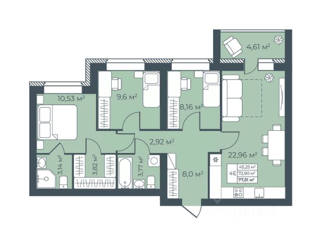 Продаётся 3-комнатная квартира в строящемся доме (85-86), срок сдачи: I-кв. 2026, общей площадью 80.8 кв.м., на 10 этаже. Расположение, транспортная доступность