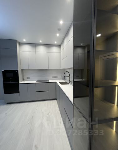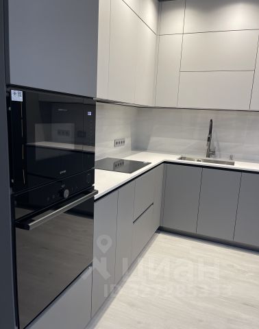 Кухонный гарнитур современный - фасады и шкафы с доводчиками, техника остается при продаже - варочная поверхность, духовой шкаф, микроволновая печь, вытяжка, посудомоечная машина.