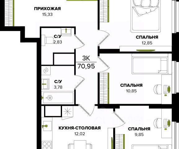 Продаётся 3-комнатная квартира в строящемся доме (Дом 20), срок сдачи: IV-кв. 2025, общей площадью 70.8 кв.м., на 5 этаже. Расположение, транспортная доступность Новый жилой комплекс "Юго-Восточный" строится в Туле, в 3,5 км от центра города. Благодаря удачным транспортным развязкам, автолюбители смогут доехать до центральных кварталов примерно за 5 10 минут, составив наиболее быстрый и удобный маршрут с учетом загруженности дорог. Проблем с мобильностью не возникнет и у пассажиров общественного транспорта. Рядом с домом расположены остановки автобусов и маршрутных такси, которые быстро довезут до любого района города. Так, чтобы добраться до центра, следует дойти пешком до остановки "Медтехника", где останавливается маршрутное такси, доезжающее до центральных кварталов всего за 7 8 минут. Инфраструктура Район, где возводится новый жилой комплекс, активно застраивается, и сеть инфраструктуры сов временем будет расширяться. Но и сейчас все, что нужно для комфортной жизни в городе, находится недалеко от жилого комплекса. В шаговой доступности расположены продуктовые магазины: "Виктория", "Овощи-фрукты", Магазин рыбы и мяса птицы, магазин мяса и колбас "У Максима", супермаркеты "Дикси", "Пятерочка", "SPAR". Неподалеку находится гипермаркет "Линия", крупный торговый центр, в котором расположены отделения банков, гипермаркет "Глобус", салон оптики, мебельный магазин "Столплит", зоомагазин "Четыре лапы" и пр. В соседнем здании находится строительный гипермаркет "Леруа Мерлен", за ним крупный магазин товаров для спорта, туризма и активного отдыха "Декатлон".Недалеко от жилого комплекса открыты кафе и рестораны: кофейня "Bonape", пиццерия "Культура", кафе "Вкуснов", кафе быстрого обслуживания "Rapido", ресторан "У фонтана" и пр.В районе есть аптеки, поликлиники, диагностические центры. В шаговой доступности от жилого комплекса расположено несколько детских садиков, в том числе, садик комбинированного вида "Алые паруса". Есть дошкольные отделения, входящие в состав образовательных центров, Центры развития ребенка. Поблизости расположены средние школы, в том числе, школа для детей с ОВЗ. Рядом с жилым комплексом находится Тульская Духовная Семинария и Суворовское училище. Надежность застройщик: достраивает объект ООО Ин-Групп.АрхитектураЖилой комплекс будет представлен 19 монолитно-кирпичными корпусами переменной этажности, выполненными в едином архитектурном стиле. При строительстве ЖК "Юго-Восточный" применяются современные материалы высокого качества, которые обеспечивают надежность домов и комфортный микроклимат в помещениях. Каждая секция оснащается современными лифтами. Помещения общего пользования отделываются экологичными материалами. Квартиры предлагаются однокомнатные (от 43,9 кв. м), двухкомнатные (от 45,8 кв. м), трехкомнатные (от 60,4 кв. м) и четырехкомнатные (от 87,2 кв. м), а также уютные студии (от 28,9 кв. м).На внутренней территории проводится комплексное благоустройство: озеленение, организация игровых площадок, мест для отдыха и зан