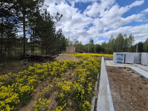 Участок ровный, правильной прямоугольной формы, с отмежёванными границами, огорожен с двух сторон забором. На участке есть несколько взрослых деревьев, на фасадной границе столб для подключения электричества.