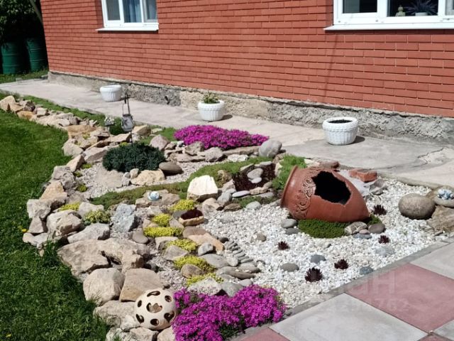 Участок также ухоженный как и дом, все сделано с любовью и для себя, выровнен, завозили землю, посеян газон, вымощены дорожки, до беседки и хоз. блока, парковка для машины, растут уже плодоносные деревья и кустарники, красивые многолетние цветники!