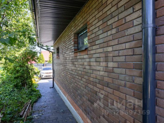 Материал стен дома монолитные плиты (72% цемент,26% деревянная стружка,2% гидратационные добавки). Утепление наружных стен 200 мм. Облицован кирпичом. Цоколь-натуральный камень.Кровля металлическая.