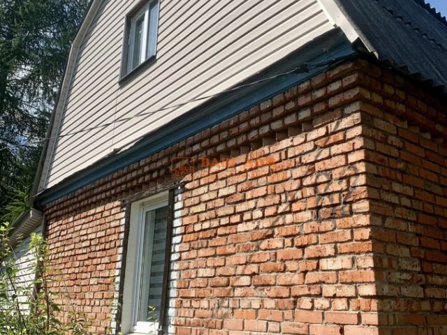 Хороший кирпичный дом с мансардой, на 1-ом этаже кухня и жилая комната, на 2-ом этаже одна комната. На участке- хозблок - сарай, туалет, душевая. Вода из скважины, сезонная, электричество круглый год, закрытая территория СНТ МОНОМЕР, круглый год под охраной. 10 минут ходьбы от конечной остановки городского транспорта.