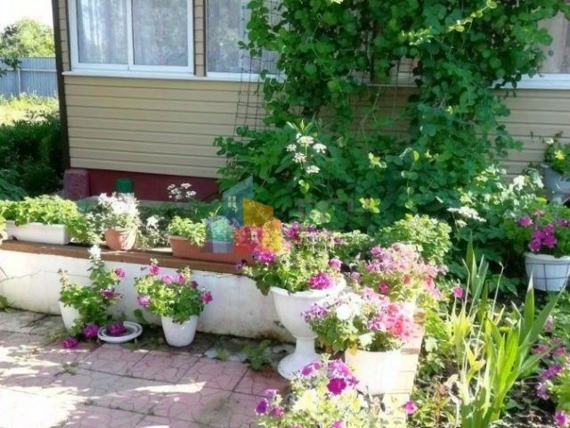 Дом располагается в правом углу участка благодаря чему участок смотрится очень просторным, перед домом большая зеленая лужайка, за домом небольшой детский уголок, также есть бытовка для хранения садового инвентаря.