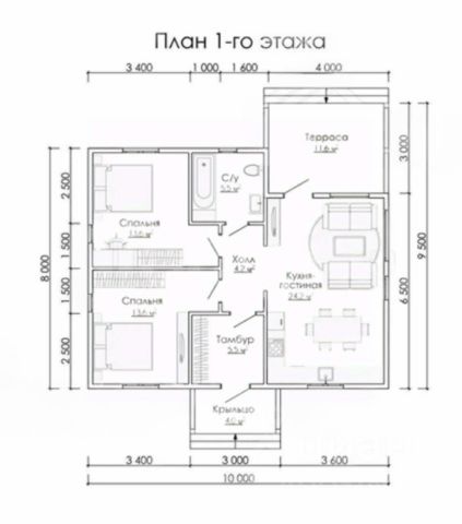 На первом этаже расположены: прихожая, кухня-гостиная с выходом на открытую террасу, кабинет, постирочная, котельная, санузел;