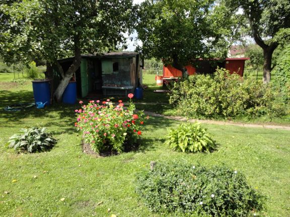 Участок также ухоженный как и дом, все сделано с любовью и для себя, выровнен, завозили землю, посеян газон, вымощены дорожки, до беседки и хоз. блока, парковка для машины, растут уже плодоносные деревья и кустарники, красивые многолетние цветники!