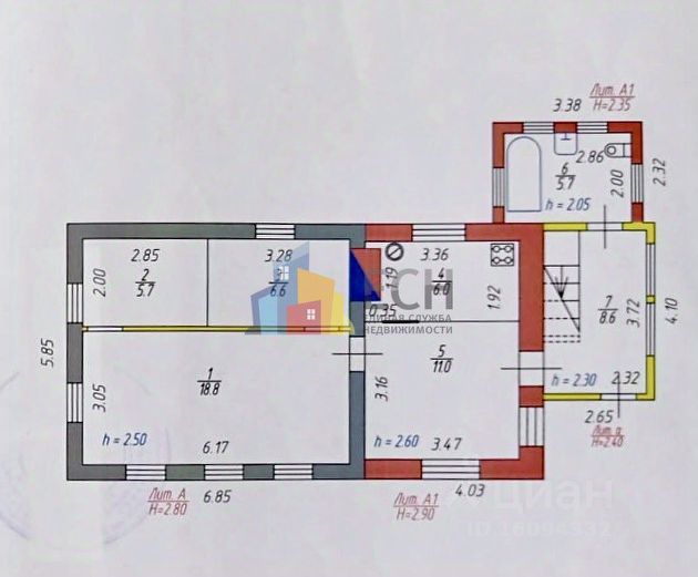 2-й этаж: 2 комнаты 12 кв.м и 20 кв.м