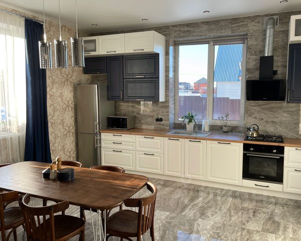 Продается один из красивейших домов нашего города. Дом площадью 223 кв. м на участке 11 соток находится в 15 км от Кремля на территории закрытого, охраняемого коттеджного поселка "Солнечный". Дом построен полностью из красного керамического кирпича. Вся инженерия в доме направлена на максимальный комфорт и долговечность. Все коммуникации заведены в дом и подключены: газ, электричество (15 киловатт), центральная канализация. Высота потолков составляет 3,3 и 3,5 м, что создает ощущение простора и свободы. Отличительной чертой дома являются огромные фасады с панорамным атермальным остеклением от пола до потолка, благодаря чему помещения наполняются естественным светом. На первом этаже большая кухня-гостинная (65м2), лаундж зона (29.3м2), гостевой санузел (2.8м2) и техническое помещение (7.3м2). На втором этаже находятся мастер-спальня,гардеробная, санузел, детские и гостевая комнаты. Этот дом идеальное место для тех, кто ценит комфорт, безопасность и стиль. Звоните для оперативного показа!