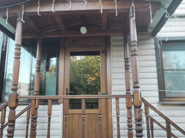 Основная часть Дома на монолитном ж/б фундаменте, стены из кирпича, на бетонных сваях пристроена душевая комната, туалет на улице, но можно сделать и в доме.