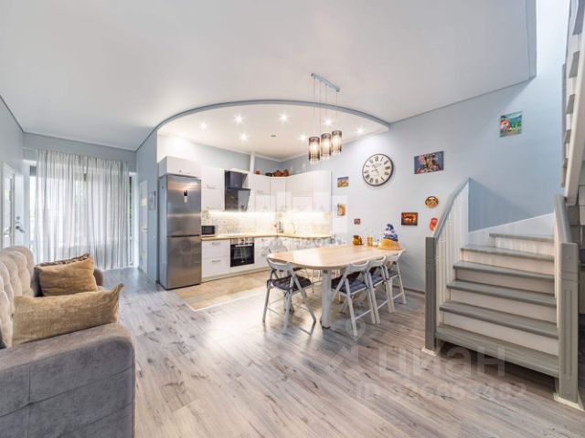 Дом выполнен в скандинавском стиле с высокими потолками и элементом второго света в гостиной. Потолок ПВХ.
