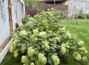 Участок хорошего размера, все строения находятся по краям участка и еще есть зеленая лужайка, растут плодовые деревья, много зелени.
