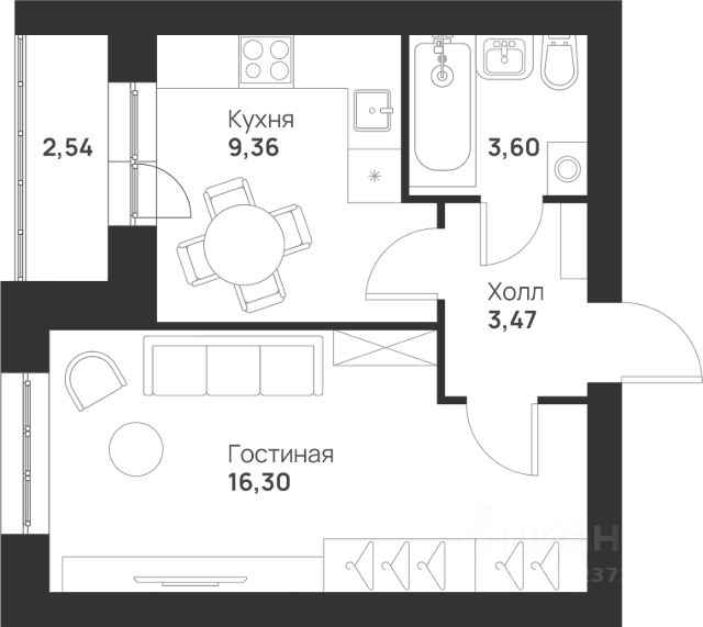Общая площадь квартиры: 44,9 кв.м. Просторная лоджия.