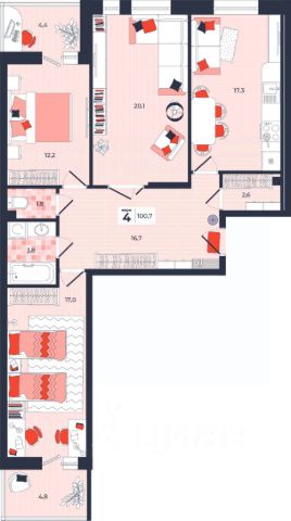 Продаётся 4-комнатная квартира в строящемся доме (Дом 30), срок сдачи: IV-кв. 2026, общей площадью 99.6 кв.м., на 6 этаже. Расположение, транспортная доступность Новый жилой комплекс "Юго-Восточный" строится в Туле, в 3,5 км от центра города. Благодаря удачным транспортным развязкам, автолюбители смогут доехать до центральных кварталов примерно за 5 10 минут, составив наиболее быстрый и удобный маршрут с учетом загруженности дорог. Проблем с мобильностью не возникнет и у пассажиров общественного транспорта. Рядом с домом расположены остановки автобусов и маршрутных такси, которые быстро довезут до любого района города. Так, чтобы добраться до центра, следует дойти пешком до остановки "Медтехника", где останавливается маршрутное такси, доезжающее до центральных кварталов всего за 7 8 минут. Инфраструктура Район, где возводится новый жилой комплекс, активно застраивается, и сеть инфраструктуры сов временем будет расширяться. Но и сейчас все, что нужно для комфортной жизни в городе, находится недалеко от жилого комплекса. В шаговой доступности расположены продуктовые магазины: "Виктория", "Овощи-фрукты", Магазин рыбы и мяса птицы, магазин мяса и колбас "У Максима", супермаркеты "Дикси", "Пятерочка", "SPAR". Неподалеку находится гипермаркет "Линия", крупный торговый центр, в котором расположены отделения банков, гипермаркет "Глобус", салон оптики, мебельный магазин "Столплит", зоомагазин "Четыре лапы" и пр. В соседнем здании находится строительный гипермаркет "Леруа Мерлен", за ним крупный магазин товаров для спорта, туризма и активного отдыха "Декатлон".Недалеко от жилого комплекса открыты кафе и рестораны: кофейня "Bonape", пиццерия "Культура", кафе "Вкуснов", кафе быстрого обслуживания "Rapido", ресторан "У фонтана" и пр.В районе есть аптеки, поликлиники, диагностические центры. В шаговой доступности от жилого комплекса расположено несколько детских садиков, в том числе, садик комбинированного вида "Алые паруса". Есть дошкольные отделения, входящие в состав образовательных центров, Центры развития ребенка. Поблизости расположены средние школы, в том числе, школа для детей с ОВЗ. Рядом с жилым комплексом находится Тульская Духовная Семинария и Суворовское училище. Надежность застройщик: достраивает объект ООО Ин-Групп.АрхитектураЖилой комплекс будет представлен 19 монолитно-кирпичными корпусами переменной этажности, выполненными в едином архитектурном стиле. При строительстве ЖК "Юго-Восточный" применяются современные материалы высокого качества, которые обеспечивают надежность домов и комфортный микроклимат в помещениях. Каждая секция оснащается современными лифтами. Помещения общего пользования отделываются экологичными материалами. Квартиры предлагаются однокомнатные (от 43,9 кв. м), двухкомнатные (от 45,8 кв. м), трехкомнатные (от 60,4 кв. м) и четырехкомнатные (от 87,2 кв. м), а также уютные студии (от 28,9 кв. м).На внутренней территории проводится комплексное благоустройство: озеленение, организация игровых площадок, мест для отдыха и зан