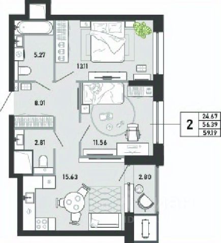 Состояние: Без ремонта. Войдите в проект на стадии чистовой отделки и создайте дизайн-проект своей мечты.